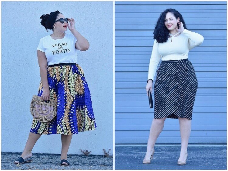La jupe crayon, en tissu épais ou foncé, associée à des talons, affine la silhouette et camoufle habilement les reliefs du ventre. Autres pistes : une jupe plissée aux couleurs vives ou une jupe à carreaux évasée. Dans tous les cas, la taille haute reste le meilleur choix.