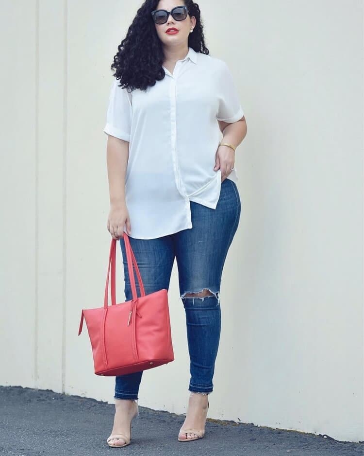 Adopter le vêtement uni est un moyen simple de composer des tenues harmonieuses et faciles à accessoiriser. Chemises et t-shirts unicolores s’associent sans peine à un jean ou un pantalon, et offrent l’occasion de jouer sur les coupes, les volumes ou les superpositions. Petite astuce inattendue : la chemise à carreaux, portée ouverte ou nouée, s’avère aussi très efficace pour masquer la zone du ventre.